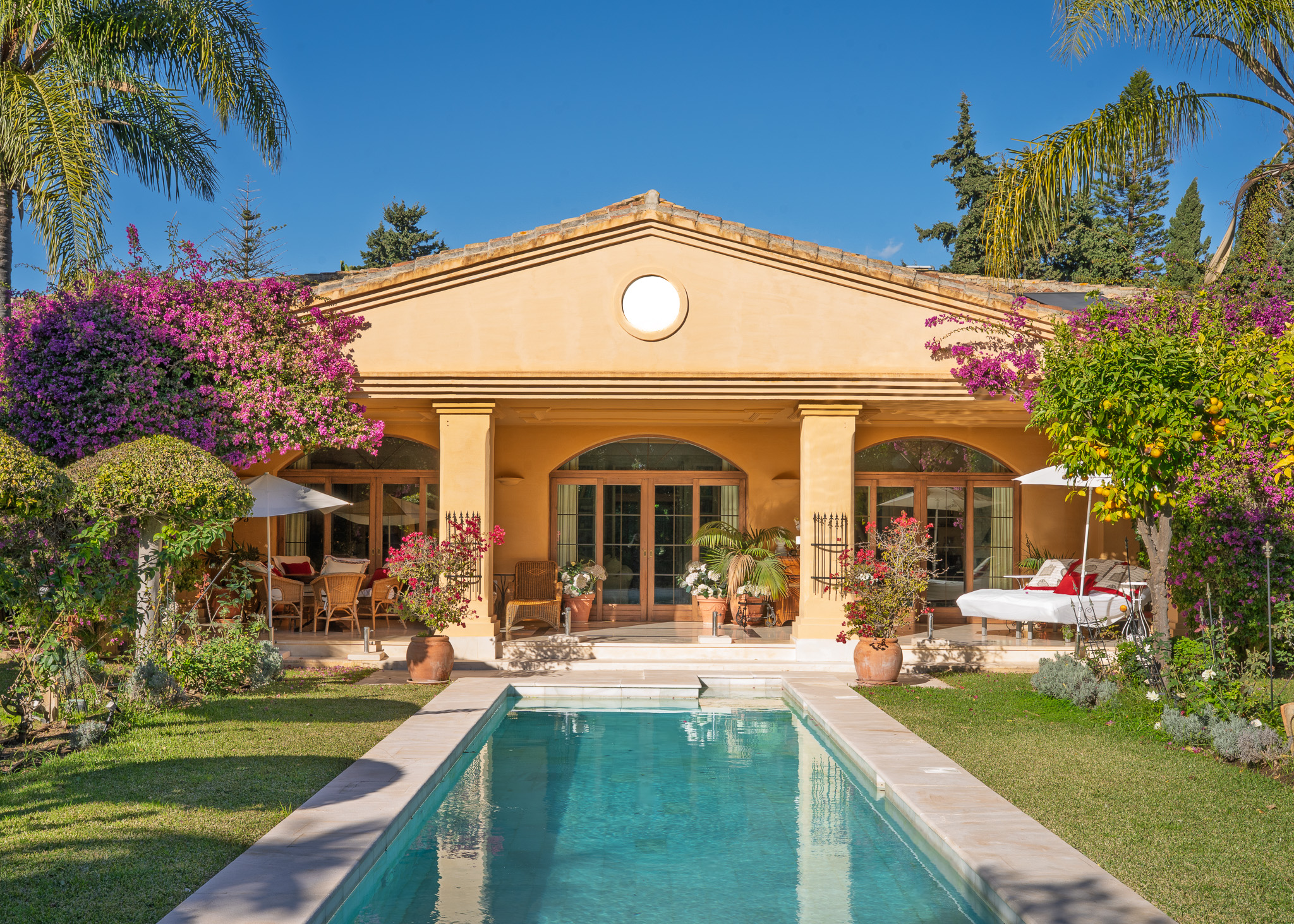 Ubicada al final de una tranquila calle sin salida en el corazón de Guadalmina Baja, esta villa contemporánea ofrece un nivel de privacidad excepcional a tan solo 300 metros de la playa